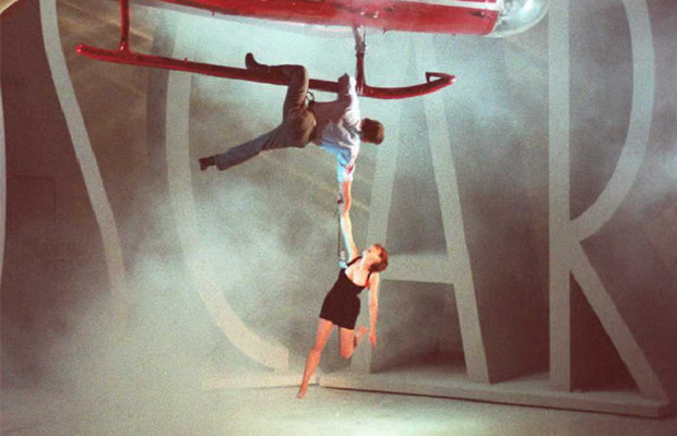 Curtis actually performed the hanging helicopter stunt with Cameron using a handheld camera to film.